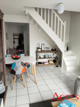 Trouvez un appartement en duplex comprenant une entrée, une cuisine aménagée, un séjour, un WC et une très grande terrasse.